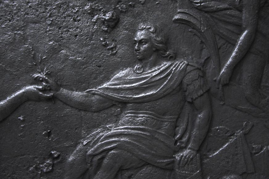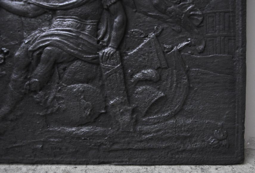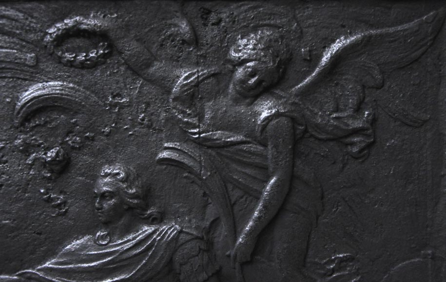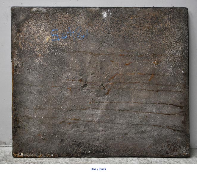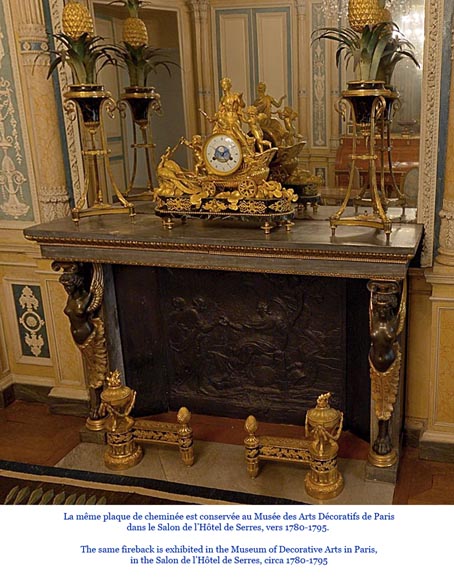 A same model fireback is now exhibited in the Museum of Decorative Arts in Paris, in a somptuous fireplace with bronze sphinxes coming from the salon of the Hôtel de Serres, circa 1780-1795.