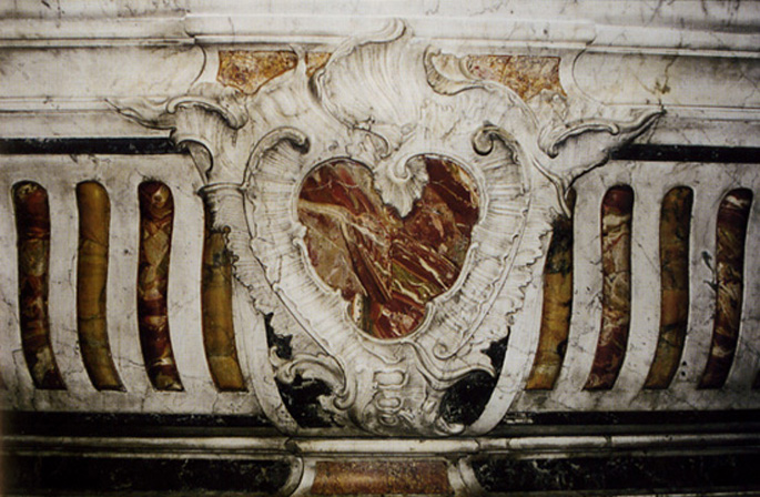 Another remarkable example is in the large altar of Saint Vincent church in the monastary of Escaladieu in Bagnères-de-Bigorre, where the quality of the carving work of the Arabescato is astonishing and is also inlayed with different marbles (Breche from Sicily in the cartouche, Brocatelle from Sienna, Levanto)