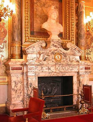 The monumental fireplace made out of Arabescato marble, in the Senate of Luxembourg's conference room is another masterpiece. An exceptional antique Louis XV fireplace decorated with three shells was also made out of this marble for the Princess's Parade Bedroom at Soubise Hotel.