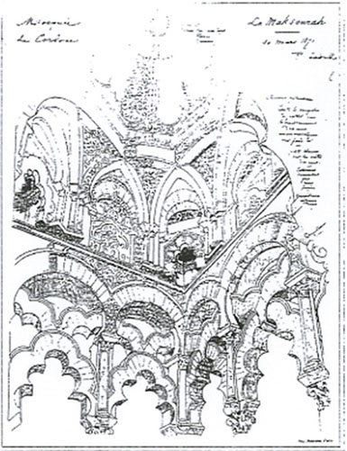 Wanting absolutely to experience Arab art with his own eyes Paul Sédille took a trip to Spain to admire Grenada, Seville and Córdoba. Sédille was rendered breathless by the Alhambra in Grenada, the Alcázar and the Casa de Pilatos in Seville, and most of all by the mosque in Córdoba.
