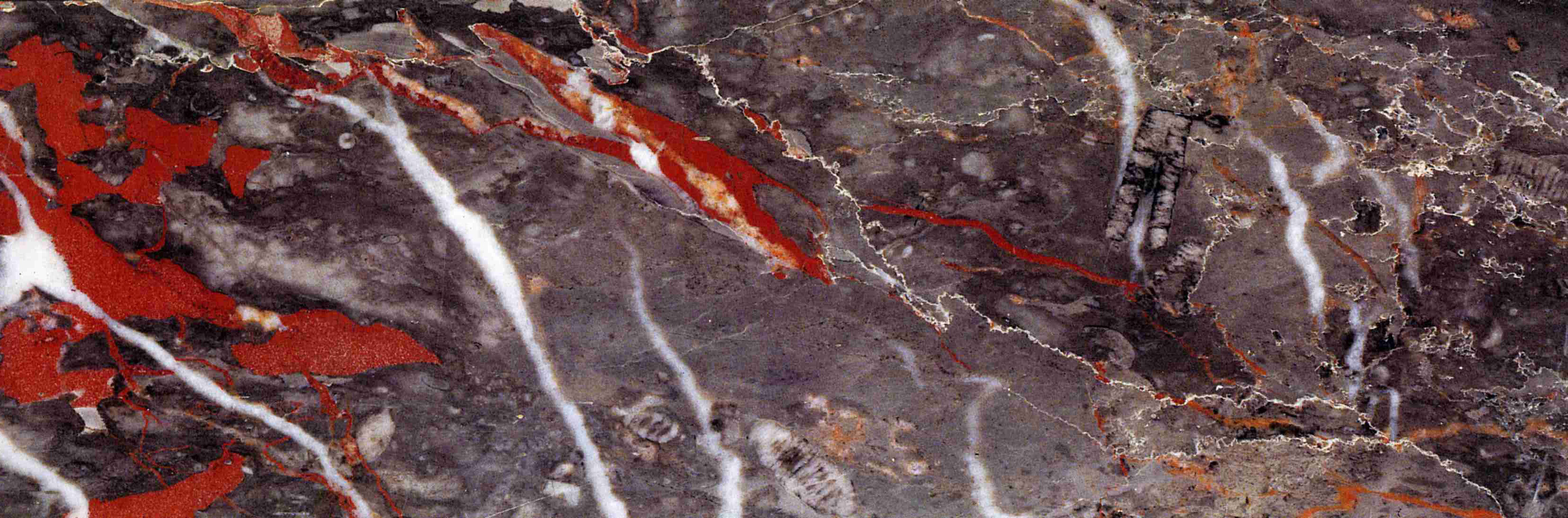 Download PDFThe Bois Jourdan marble is a crystalline limestone with a grey background going from light grey to dark grey, with lots of white veins, and we can also find large red veins on some.