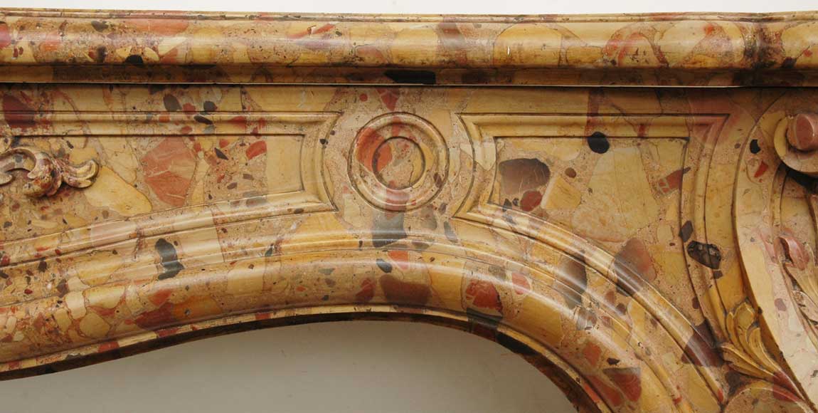 Breche marbles are used both in furniture and mantels. The very graphic effect of Breche d'Alep marble for example was very popular during the 18th century. It is found in many of the beautiful dwellings of the time like in the Chateau of Chantilly.