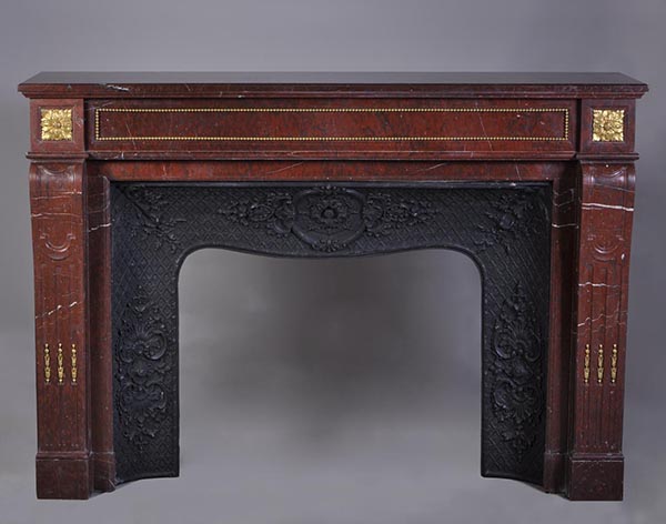 Antique Louis XVI style mantel in Red Griotte marble ornamented with gilded bronze, 19th century (ref. 2588)