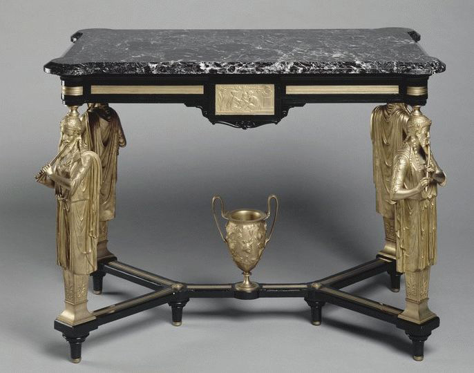 In 1859, Achille Collas’s death gives him entire property of the foundry. His production’s excellency entitles him Head of the Bronze Industry Committee in 1865. When he died in 1892, his heir Gustave Leblanc-Barbedienne (1849-1945) takes over the foundry, then called “Leblanc-Barbedienne”, specialized in monumental sculptures, and in activity until the mid 20th century. It is Leblanc-Barbedienne that will have the honor to work with Auguste Rodin. The furnishing production is taken over by Paul-Alexandre Dumas, an Art Nouveau artist, Majorelle’s student, who signs several furniture and wallpaper catalogs as “Dumas-Barbedienne” between 1900 and 1906.