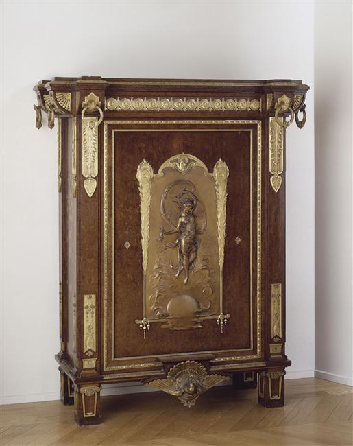 The Demidoff Vase, made in 1819 by the sculptor and bronzemaker Pierre-Philippe Thomire in malachite veneer and gilt ormolu, is a superb example of fire-gilding. This vase, almost two meters high, was ordered by Count Nicolas Demidoff to furnish Villa San Donato, his residence near Florence, Italy. The vase is now preserved at the Metropolitan Museum of Art in New York.