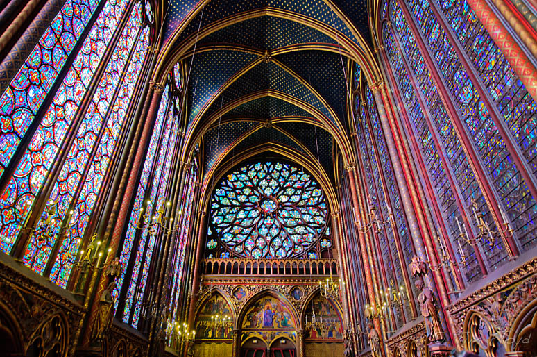 Sainte Chapelle was built by Saint Louis on the Ile de la Cité in Paris and housed relics of the Passion of Christ. It was the last Gothic architecture to be made.