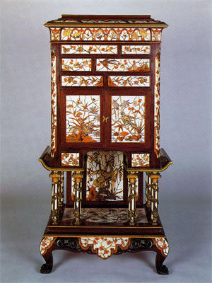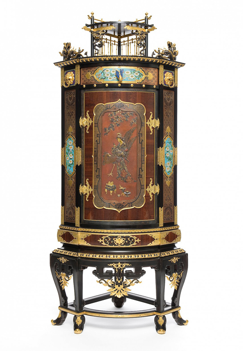 Several cabinetmakers, mostly Parisians, specialized into Japanese furniture. Gabriel Viardot was the leader of those producers, their oldest representative, and the one who had the longest influence. This cabinet (picture 5) well embodies the period and the artwork of the creator.