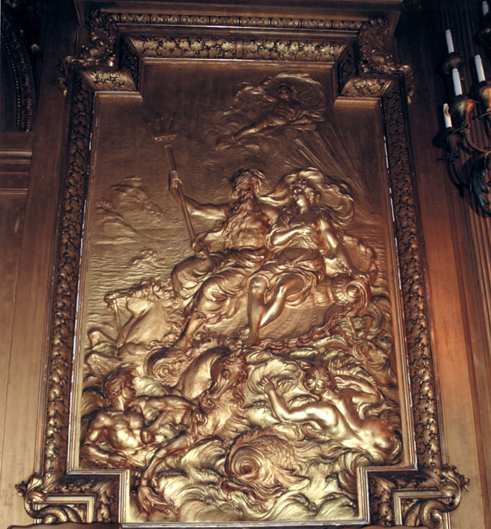 Ardisson created two monumental low-reliefs with representations of Neptune for the Marble House and the Fifth Avenue Berwind estate (photos 2 and 6). This work exemplifies the sculptor's style through its theme as well as its iconography.