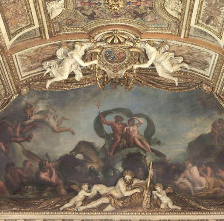 - For the Vanderbilt version, the artist was undoubtedly inspired by the ceiling of the Apollo Gallery at the Louvre (photo 10). The very rich decoration that frames the composition is perfectly consistent with the flamboyancy of the eighteenth century.