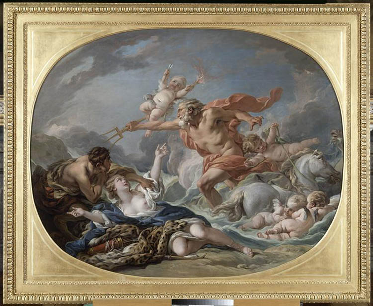 - The sculptor was often inspired by Boucher (1703-1770). The cherubs flying above the chariot in the Berwind version are very similar to those in Boucher's painting Neptune poursuivant la nymphe Amymone (Neptune following the nymph Amymone) (photo 11).