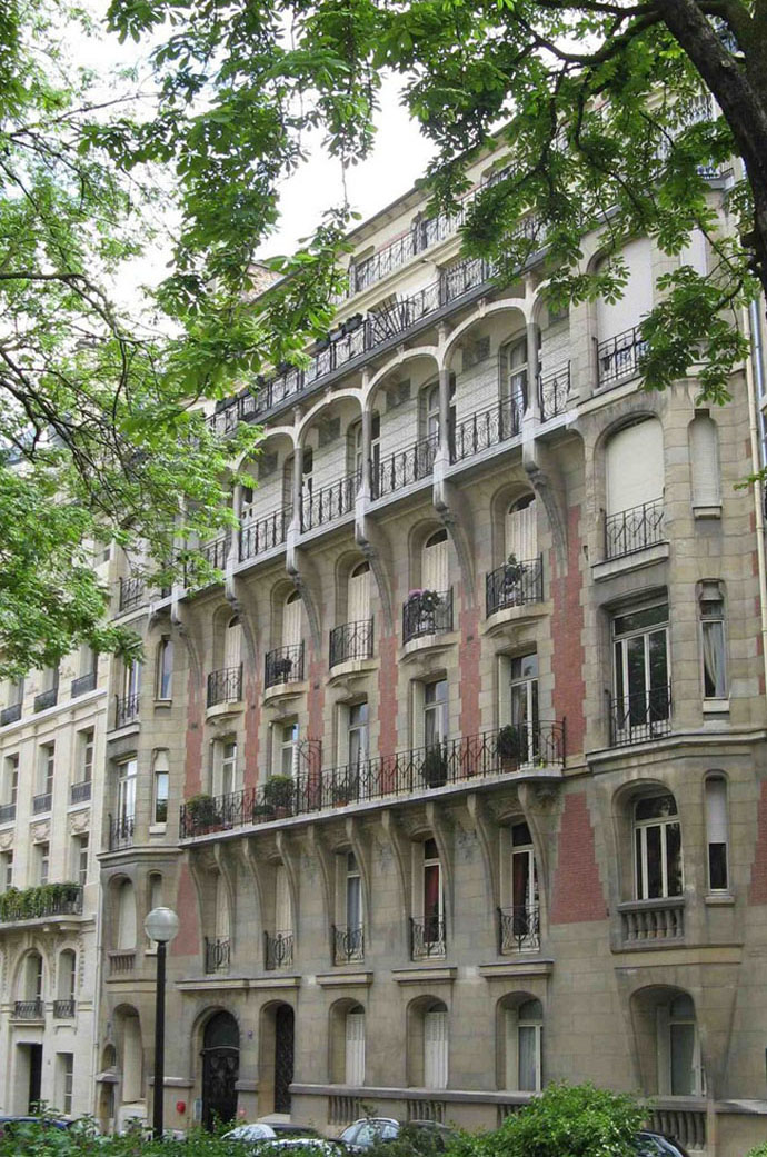 In 1904, he built a building situated on 9 rue Le Tasse in Paris for Mr. Perrier. His friend Plumet had been using loggia arches for a long time, a feature that became very characteristic of his work. Sorel shamelessly copied the idea, and used it as the main decorative element of a very bourgeois building, with remarkable symmetry. He added a bit of colour to its façade by using vast red bricks. The detail on the metalwork and sculptures is remarkable. The main door, still considered an architect's bravura piece in the 1900s, has a particularly elegant doorknob, where two salamanders tenderly intertwine. The sculptures on the façade, follow the well known plant repertoire of the Art Nouveau style, and were made by Pierre Seguin.