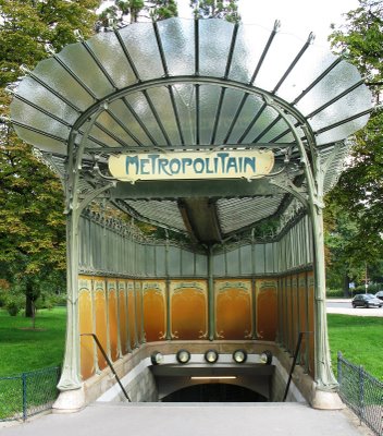 It is hard today to find references of the first marquises, but there are some Renaissance style marquises that are elaborately decorated. Some bigger and more elaborately decorated marquises belong to the Louis XIV style. Louis XV marquees were elegant with curved belts and highly adorned brackets, while the Louis XVI style developed a high level of refinement in the design of their broad glass panes and artistry of the wrought iron work. At first reserved to inner court yards, marquises were not found adjoined to the exterior facades of buildings until the end of the 19th and early 20th centuries. Parisian facades were embellished with extraordinary wrought iron marquises as the rigid Haussmanian architectural law subsided. They were placed above the entrances of homes and hotels, theaters, cafes and restaurants but most famously above the stairways of Hector Guimard’s Metro station.