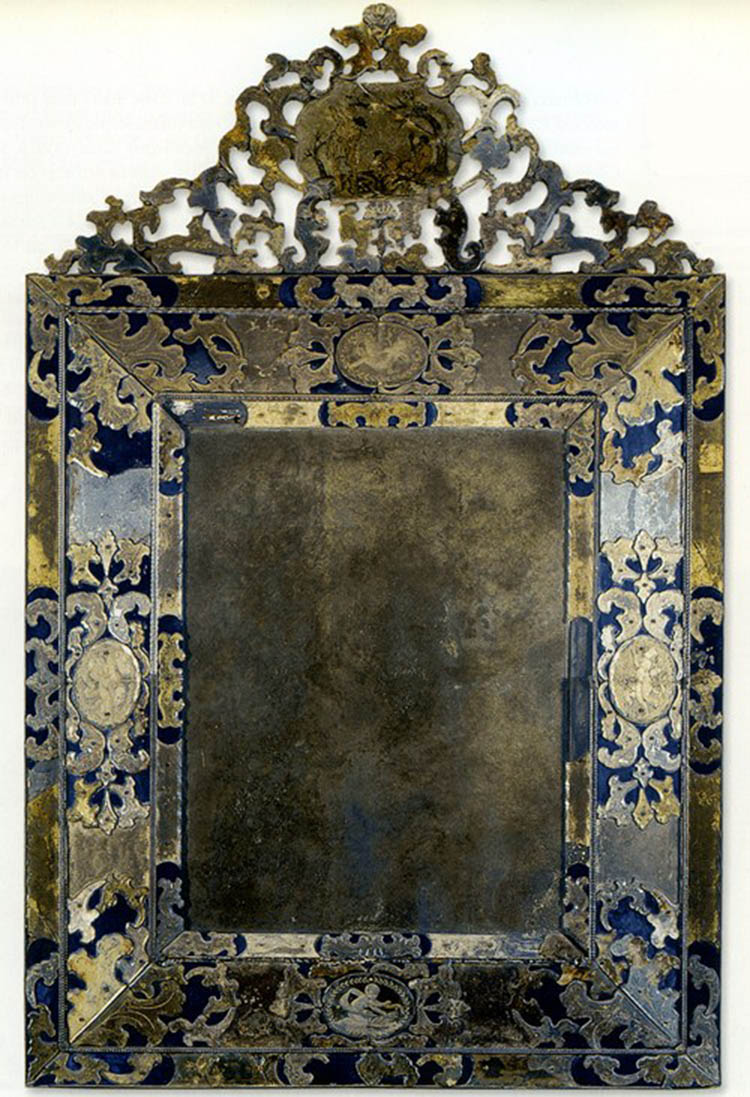 Today, 80% of these mirrors are originals. These can be recognized because they are not beveled. They are the proof that the new French factory was able to take the mirror monopoly away from Venice, mirrors being luxury items at the time. These mirrors were popular for interior decorating under Louis XIV.