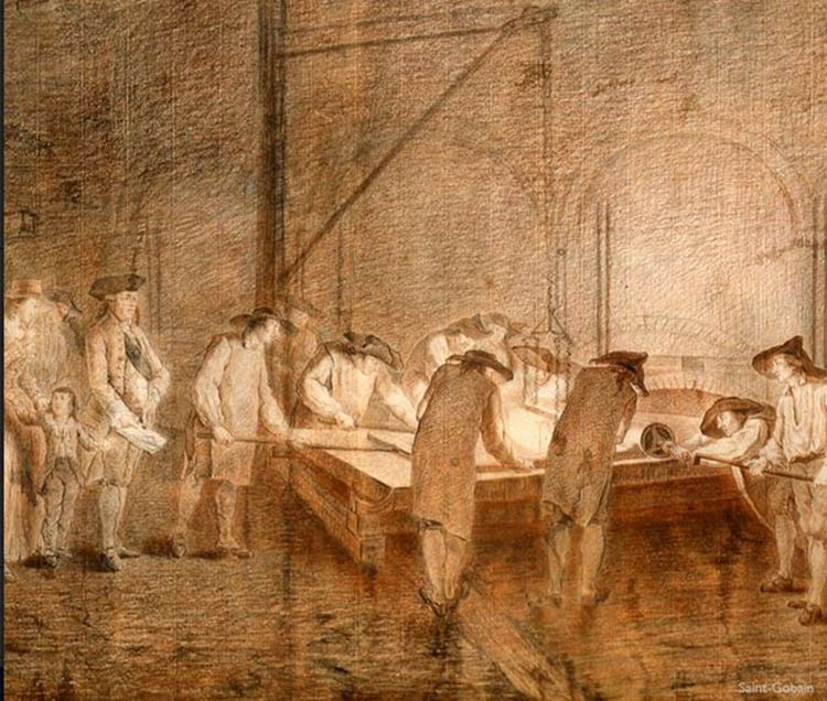 One of the most famous examples of this French production is of course that of the Galerie des Glaces at the Versailles palace and its 357 mercury mirrors. The Saint-Gobain factory, founded in 1665, completed this colossal work. They used flat-surface glass casting from 1684, which was a huge help to the operation. In the 1690's, lamination, or laminated glass, was invented. It made for more resistant and larger creations.