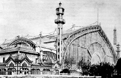 With the World's Fairs , showcases of the countries’ modernity, the States engaged great prestige constructions and displayed their excellence in the art of metal, “an entirely contemporary art […] almost entirely rejecting stone and wood - the raw materials supplied by earth” wrote Huysmans after the Exhibition of 1878. For the London World's Fair of 1851, Joseph Paxton built the Crystal Palace - a giant greenhouse of 3800 tons of cast iron, 700 tons of iron. Modular and industrial surfaces proliferated. Replicas flourished all over the world and the Galerie des Machines of the World's Fair of 1889 in Paris both echoes the Crystal Palace’s accomplishments and takes them even further. For this construction, architect Ferdinand Dutert and engineer Victor Contamin managed a record vault span of 420 meters long, 115 meters wide and 45 meters high. The Eiffel Tower was built for the same Fair. However, the aesthetics of this architecture was not yet accepted by the population.