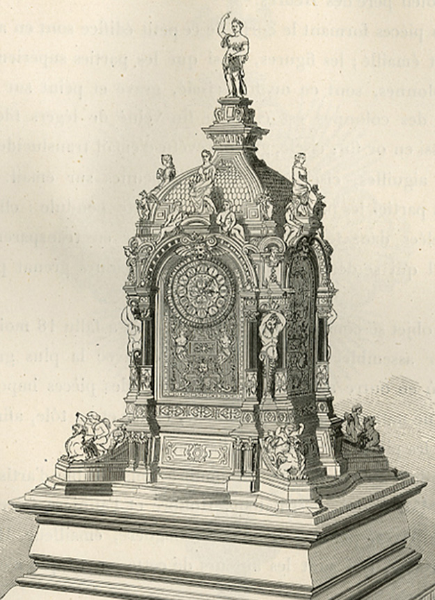 - photo 1 : Renaissance style pendulum by Baugrand, World's Fair of 1867 . Baugrand, jeweller for Emperor Napoléon III presented this remarkable pendulum made out of gilded silver, chiseled, engraved, and enameled, fine gold and coated in enamel, lapis-lazuli, and rock crystal.