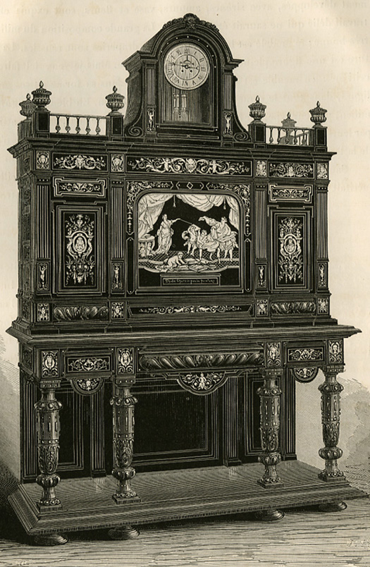 - photo 5 : Piece of ebony furniture, encrusted in ivory, Renaissance style, by Hunsinger, World's Fair of 1867 .