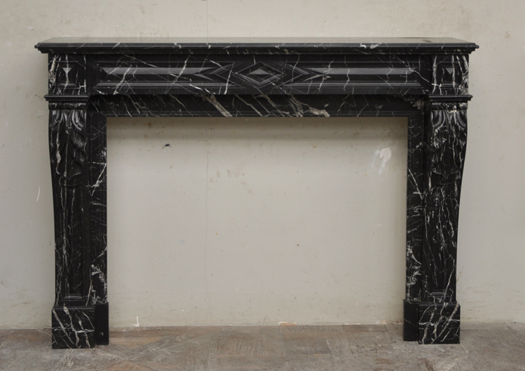 Antique Napoleon III style fireplace made out of Noir Marquina marble.