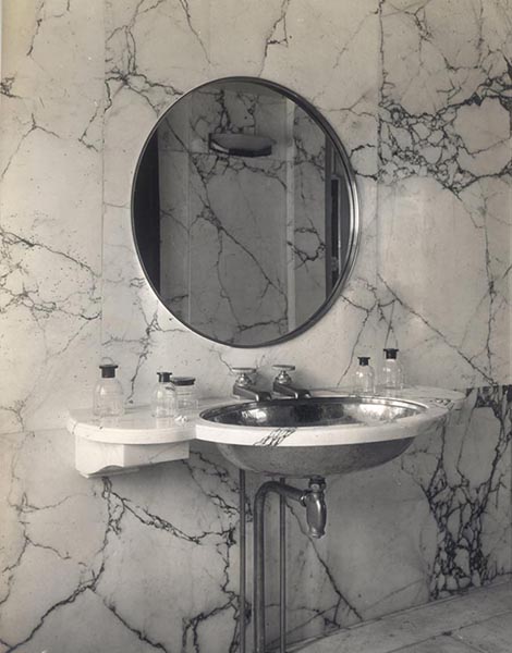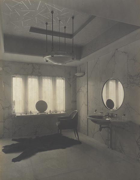 Bathroom in Paonazzo marble in the Pavilion of the Collectionneur, by Ruhlmann, at the 1925 Paris International Exhibition of Decorative Arts, Library of Decorative Arts, Album of the Pavilion of the Collectionneur by J.E. Ruhlmann.