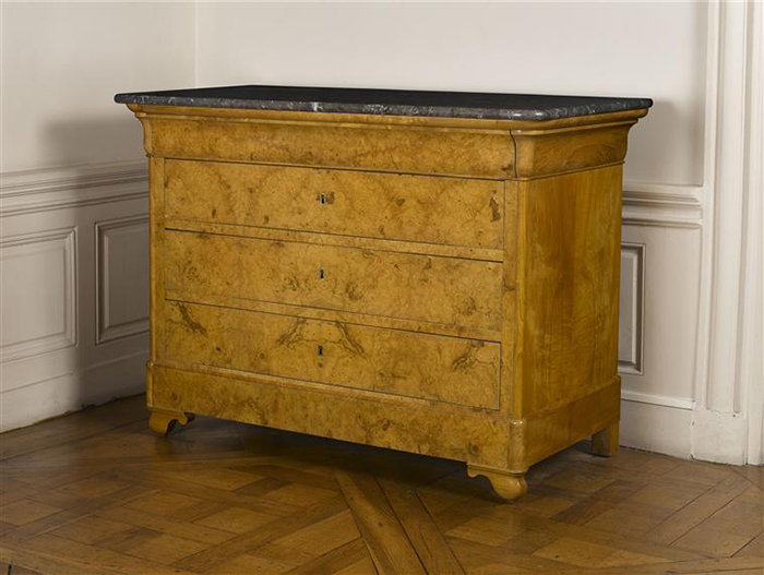 Like Brion, other artisans of the Empire such as Francois-Honore Jacob-Desmalter are still in place, and continue to produce models of the Neo-Classical style, while lightening them and privileging the curves. The end of the Empire indeed enables to soften the forms, among which the doucine in form of an S is often used on the fireplace and buffets cornices.