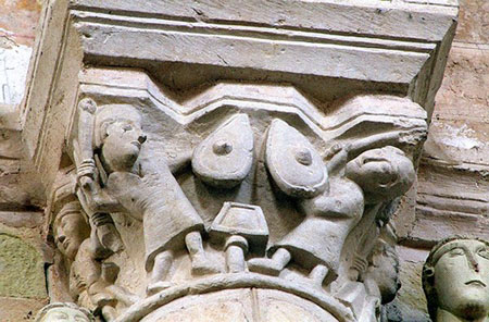 photo 2 : Romanesque sculpted capital from Airvault abbey, France.