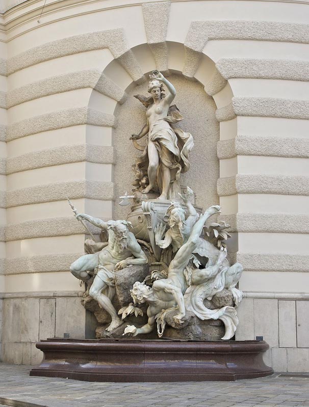 Download PDFA distinguished academician, Rudolf Weyr (1847-1914) was a most active member in the Neo-Baroque and Neo-Rococo movements, of the late 19th and early 20th centuries. Noticed by the imperial couple, he is the author of a great amount of monuments in Vienna and other cities of the Austro-Hungarian Empire. His most famous work is the fountain Die Macht zur See, or « The Power On The Sea », raised in 1894 on the Michaelertrakt before the Hofsburg Palace. This fountain represents the marine forces of the Austro-Hungarian Empire, twin of « The Power On The Land », representing the armies.