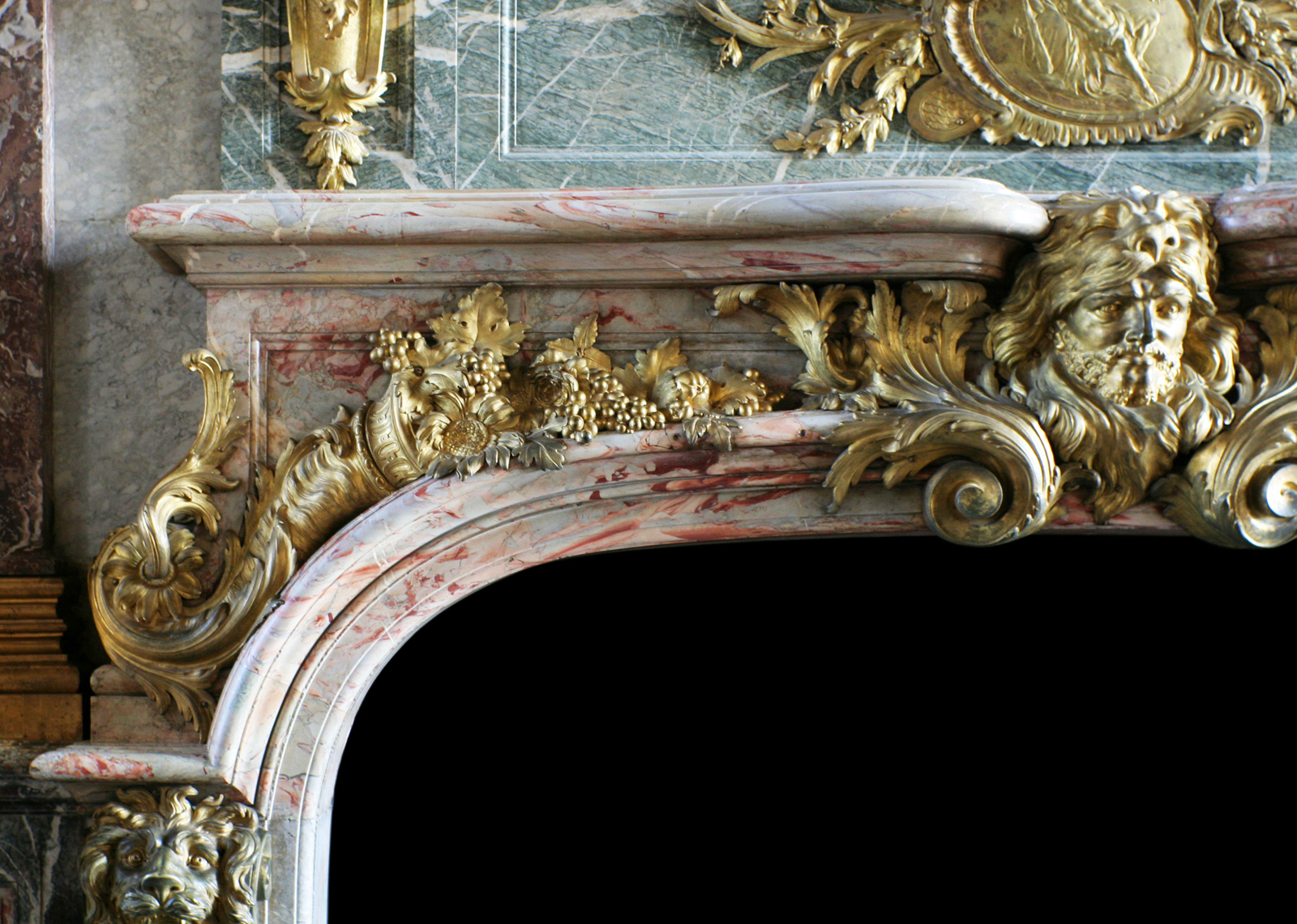 The Sarrancolin marbles can be found in the most prestigious staterooms of Versailles. It has been used for the large fireplace in the Hercules Salon, made under Louis XV and richly decorated with gilt bronzes.