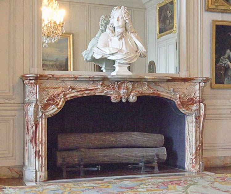 We also find the same Sarrancolin Fantastico marble in the fireplace adorning Queen Marie Lecszinska's bedroom in Versailles.