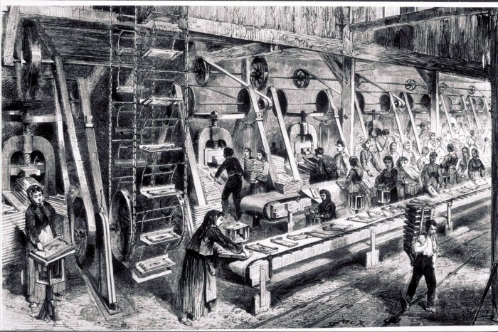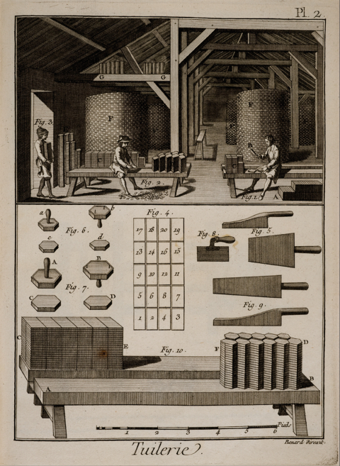 Engraving depicting the inside of a terracotta factory in the 19th century