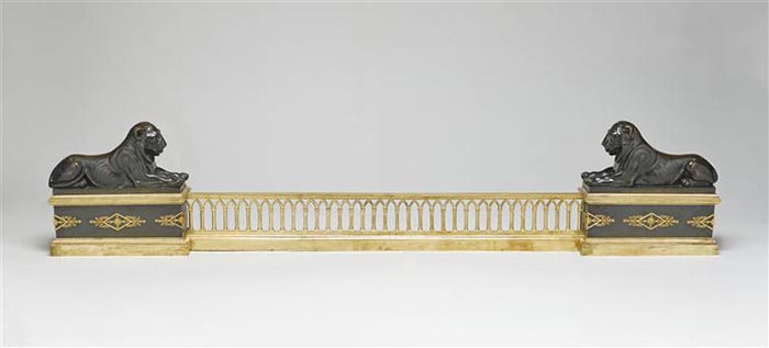 In French, they are called “chenets”, a noun coming from the word "dog", that refers to the role of this tool that keeps the fire, and their shape reminiscent of sitting dogs. That is why the English language also calls them "firedogs". It is also common to see andirons decorated with dogs lying or sitting, standing guard over the hearth, and more symbolically of the hearth of home. Perpetuating this idea, these dogs were sometimes replaced by lions, or sphinxes, for Marie Antoinette and under the Empire.