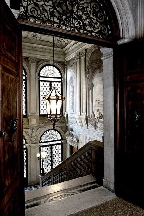 Hence, to revive its splendor, the palace was considerably enlarged and redecorated entirely from 1874-1875. This undertaking was led by the architect Girolamo Levi and by the decorator and antique dealer Moises Michelangelo Guggenheim . The first was in charge of the work of expansion and modernization of the palace, the second of interior decoration. Guggenheim created a journey through the ages inside the Palazzo Papadopoli, conceived to amaze the guests. Every room is decorated in a different style, recreating aristocratic atmospheres. One walks from the solemn grand staircase, evoking Quattrocento, to the Rococo exuberance in the “Stucco Room”; from the scholarly and opulent ambiance in the “Hall of Four Doors”, to the “Chinese Room”’s refined fantasies. The renovation was so important that a columnist wrote, in the "Gazzetta di Venezia": "The Palace Tiepolo of the sixteenth century gives birth to the Palace Papadopoli of the nineteenth century."