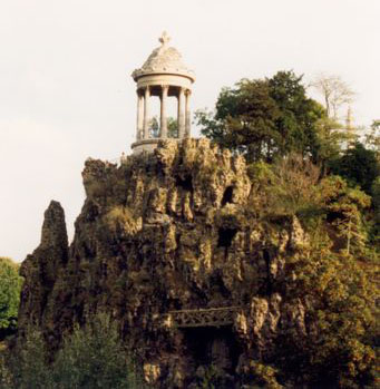 - photo : Parc des Buttes Chaumont, Paris, example of the "art of the Rocailleur".