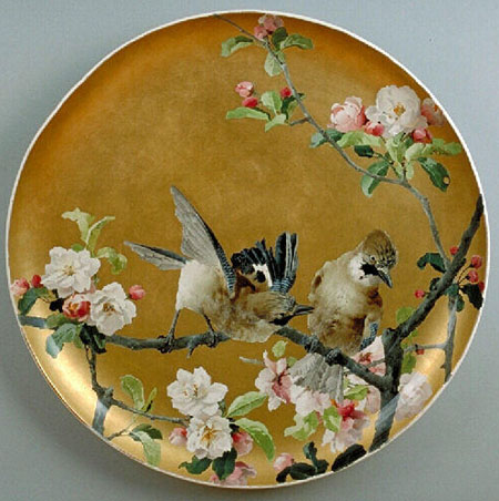 - Photo 1 : Large plate with gold background. Ceramic manufacturer of Sarreguemines.