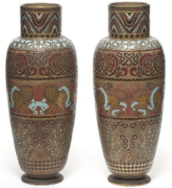 - Photo 2 : Pair of Kurd vases. Circa 1880-1995. Ceramic manufacturer of Sarreguemines. Stoneware “land of Egypt”, decorated and enamelled. Museum of the Decorative Arts in Paris. Inv. 2008.97.1.1-2