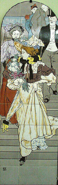 - Photo 6 : “The department stores”, decorative panel. Eugène Martial Simas, manufacturer of Sarreguemines. Museum of Sarreguemines Faience. Inventory number: 95.163.1. Source : www.culture.gouv.fr