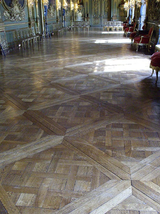 “In Trianon (…), parquetry is quite like paneling. There’s one single room in Versailles which parquet is not by squares (…) the entire rest is diamond-shaped in the new style”.