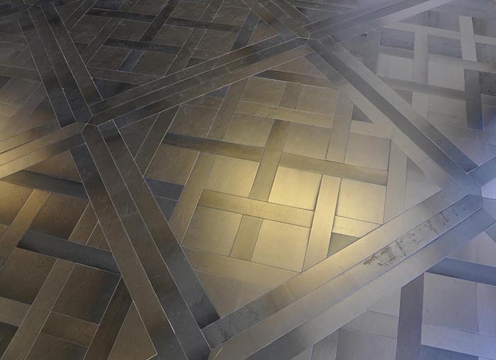Parquetry is an element of aristocratic decoration, its name referring to the “parc”, enclosure surrounding the stage where Justice was given. Different parquetry patterns, as “Herringbone” or “parquet de Versailles” were born, legacies of technical and esthetic key progresses.