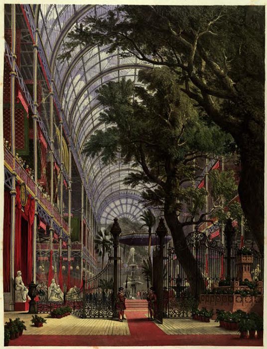 The Exhibition’s Entrance and centenary tree. Dickinson’s Comprehensive Pictures of The Great Exhibition of 1851, London, Her Majesty’s Publishers, 1854.