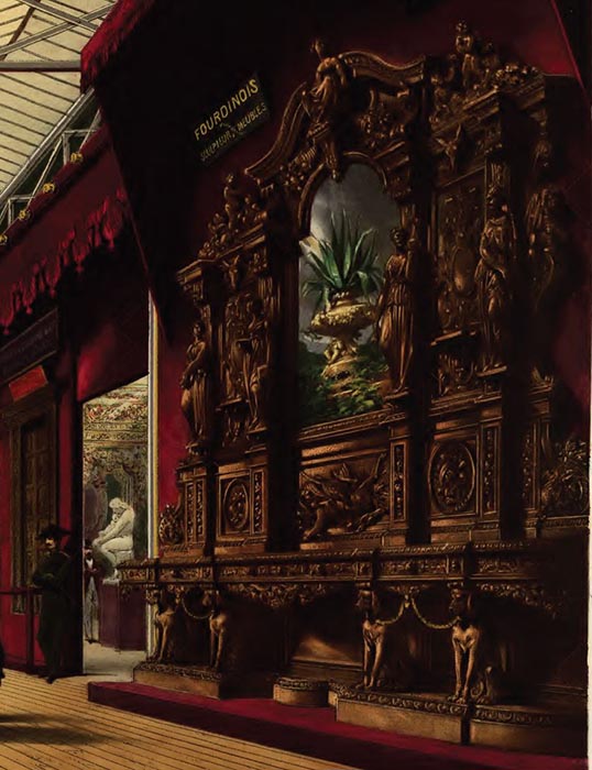 Display of the woodworker Fourdinois at the department of France. Dickinson’s Comprehensive Pictures of The Great Exhibition of 1851, London, Her Majesty’s Publishers, 1854.