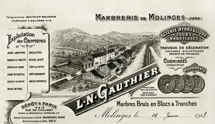 Champied's quarry was operated by the Company of Molinges marble works (Compagnie de la Marbrerie de Molinges) between 1845 and 1930, under the direction of Nicolas Gauthier. The quarry provides in 1898, 120 m³ of Yellow Lamartine marble. Nicolas Gauthier, owner of the Company of Molinges marble works, built a foreman's house around 1899.